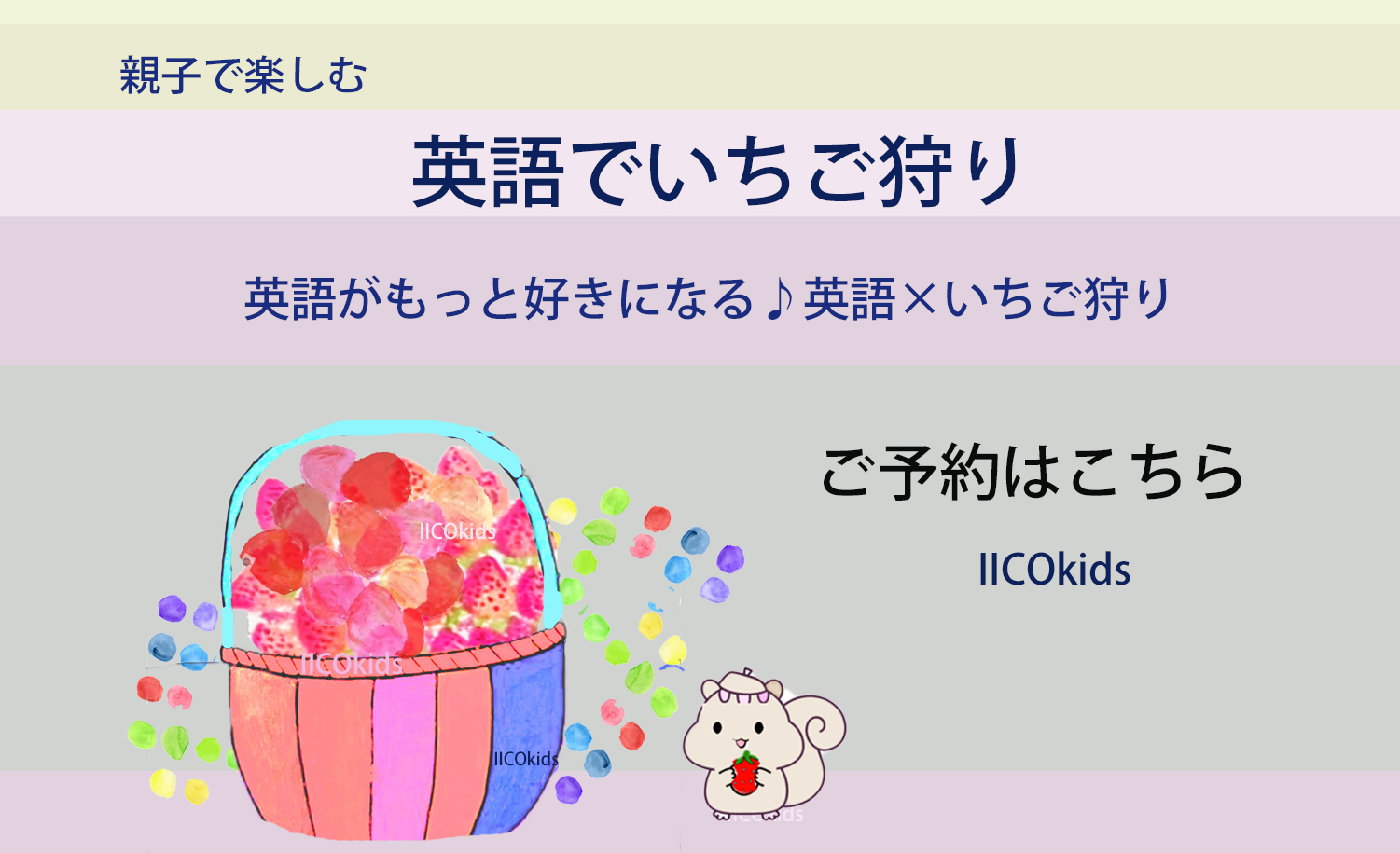 IICOkids いいこきっずは、子供向け、音楽、絵本、お絵描きなどを通じて楽しく学ぶこども外国語教室です。